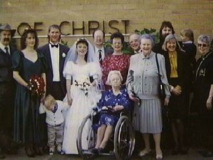 David Larsen and family circa 1995 - from L/R daughter Verena, grandson Thorgal, son Gernot and his friend Linda, my wife Ursula with grandson Gustav, myself David Larsen, son Mark and his wife Debbie. (Gustav and Thorgal are the sons of Verena - Verena and her husband Paul Adjriou live in a rural area near a country village in France). |