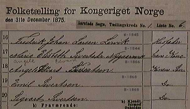 B-1866, Emil B-1868, Sigvart B-1868 were recorded as Sivertsen and not