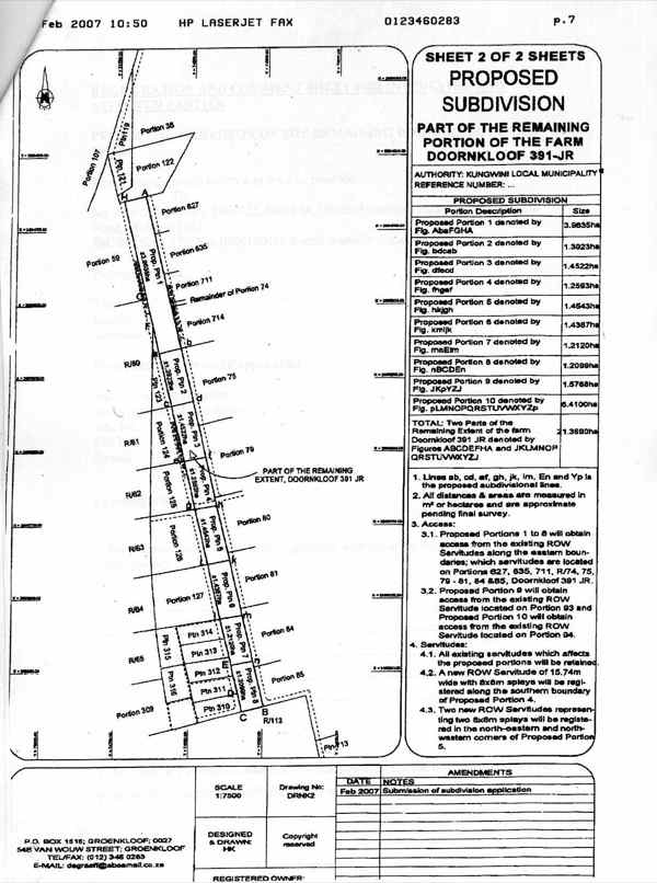 Proposed subdivision of the remaining Doornkloof Farm 391 JR