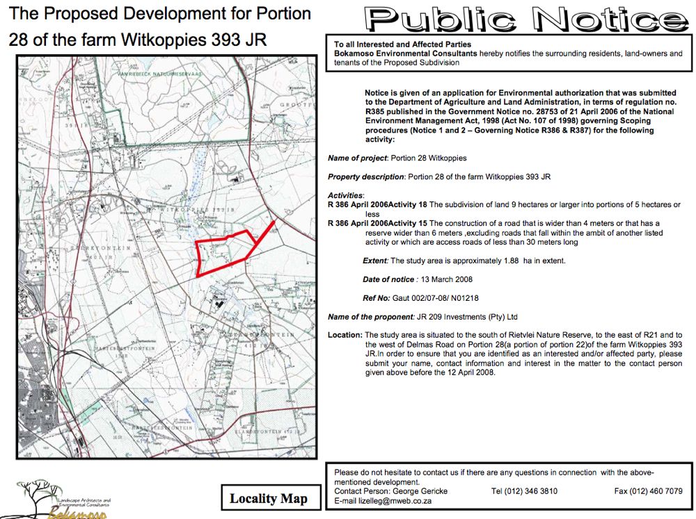 Rietvlei Development on Witkoppies portion 28 - Bokamoso Notice