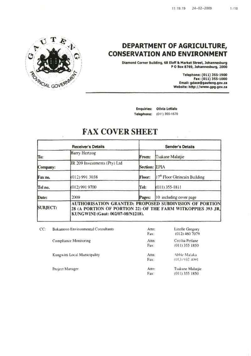 Please refer to the attached positive ROD (Record of Decision) for the Witkoppies Portion 28 project.