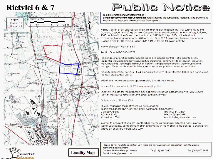 Queries regarding this matter should be referred to: BokamosoLandscape Architects and Environmental Consultants