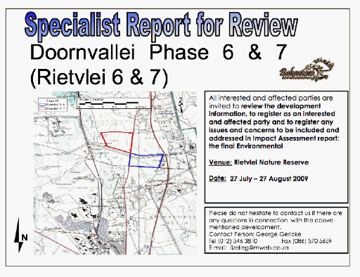 Please refer to the attached invitation to review the draft Scoping report for the proposed Rietvlei 6 & 7 project.
