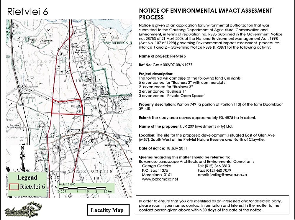 We asked that the Doornkloof Owners Association (DKOA) be registered as an Interested and Affected Party (I&AP).
