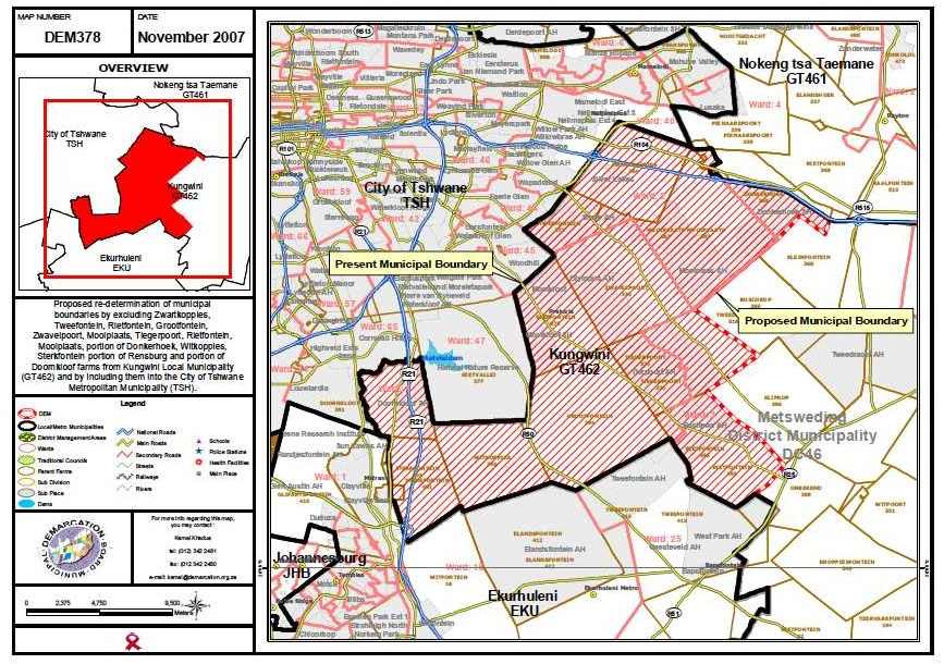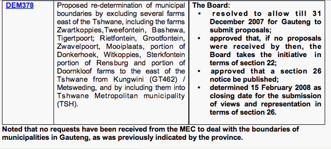 These MDB notices propose that our section of the farm Doornkloof 391-JR come under the jurisdiction of the City of Tshwane.