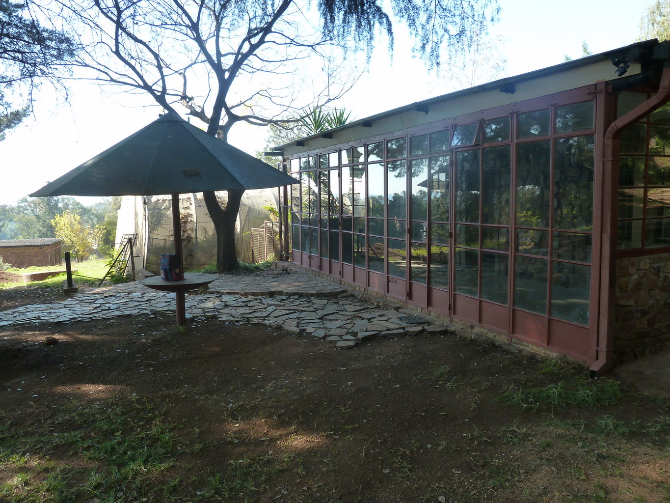 Farm cottage on the eastern slope of a north south ridge with a view of the Rietvlei Game Reserve on a portion of the original farm Doornkloof East of Irene and south of Pretoria near the Rietvlei Dam .