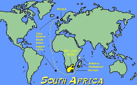 Debora Expedition - Map of Route taken from Norway to Madagascar